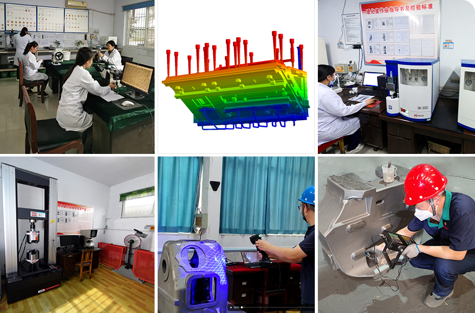 公司建立的化學分析實驗室、物理性能檢測實驗室擁有直讀光譜儀、碳硅分析儀、金相顯微鏡(倒置式/便攜式)、萬能材料試驗機、高頻紅外碳硫分析儀、氮氧分析儀、型砂高溫分析儀、3D尺寸掃描儀、低溫沖擊試驗機,超聲波、磁粉、著色等無損檢測儀,爐前/后理化分析儀等設備。